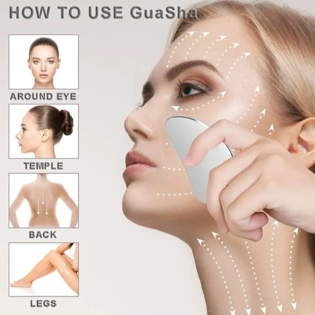 Εργαλείο Gua Sha από ανοξείδωτο ατσάλι, για μασάζ στο πρόσωπο και το σώμα. Οφέλη Μειώνει το πρήξιμο Διεγείρει την κυκλοφορία Μειώνει την ερυθρότητα και... περισσότερα
